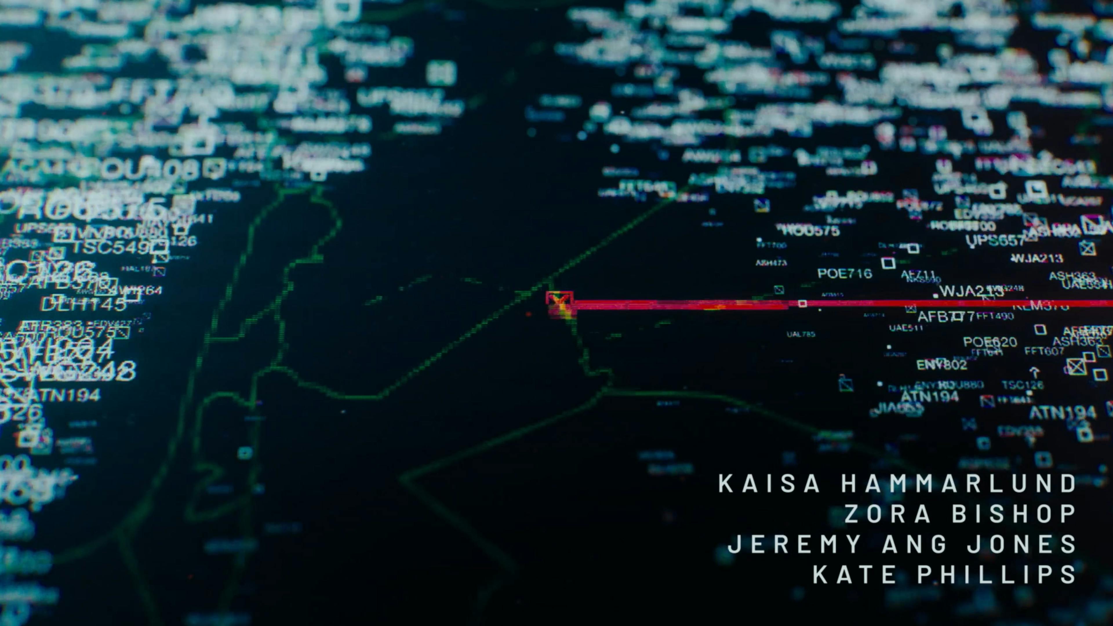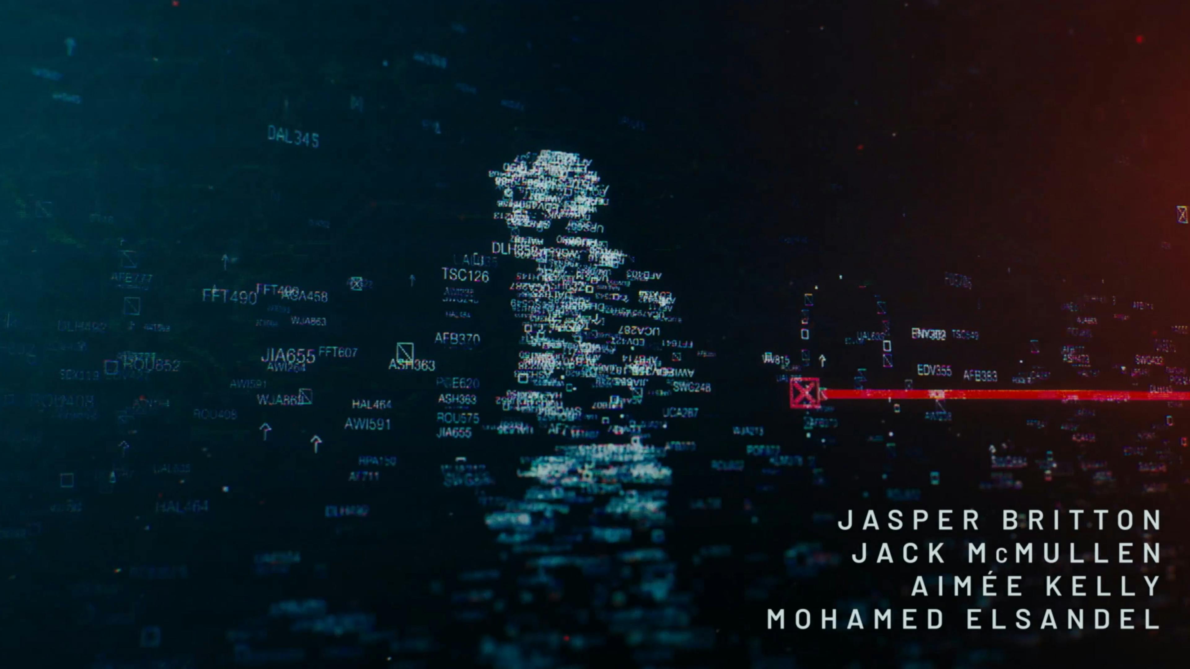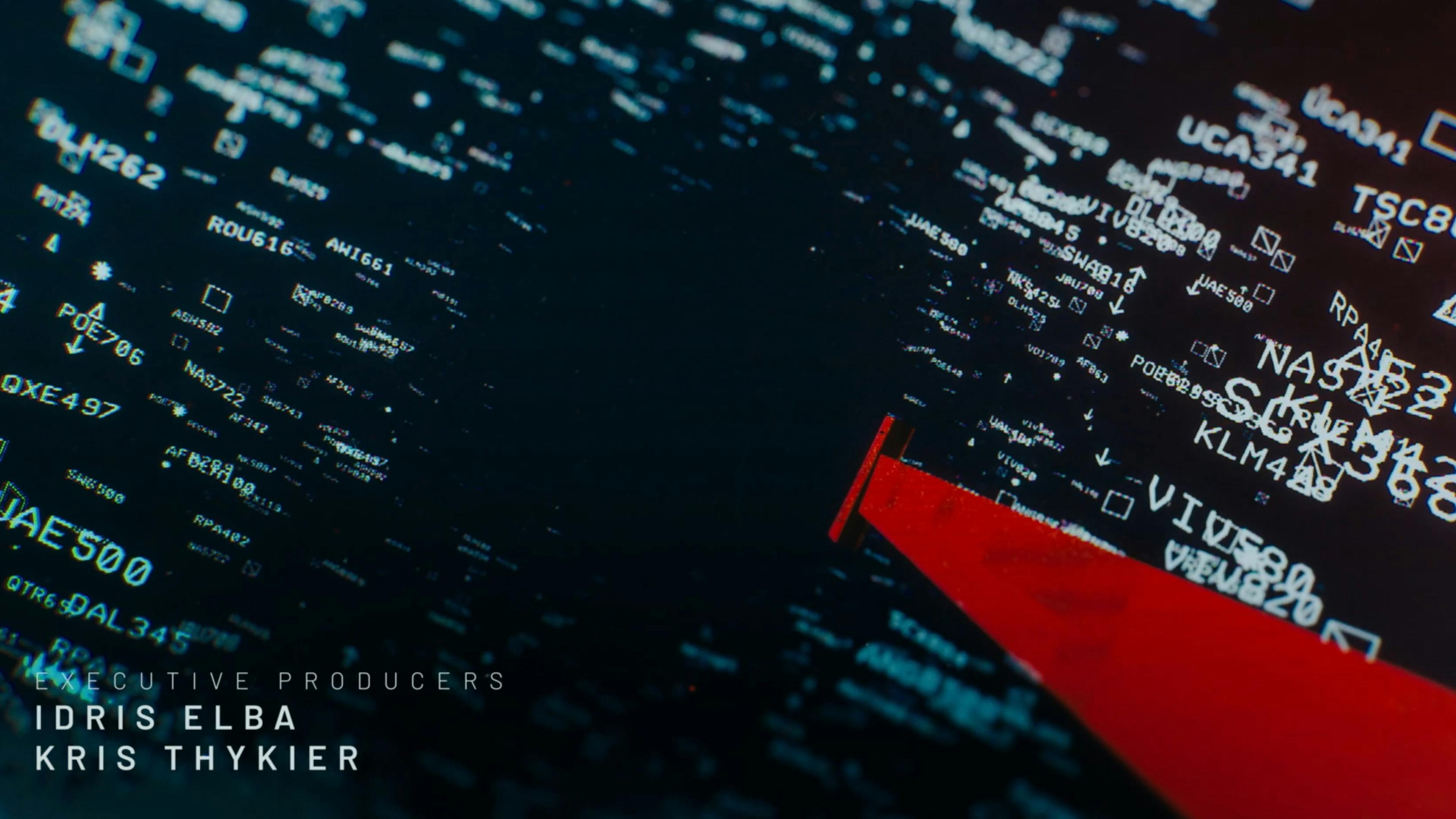 Hijack is a thriller series following the 7-hour flight of a hijacked plane. To set the stage for the tense, suspenseful show, the opening uses the visual language of digital flight tracking graphics. Amidst a sea of flights tracked by air traffic control, we follow a single line that turns from white to red: our hijacked plane. After navigating the complex web of airline numbers across multiple countries, the chaos of digital I.D.s coalesce to form the show’s logo.