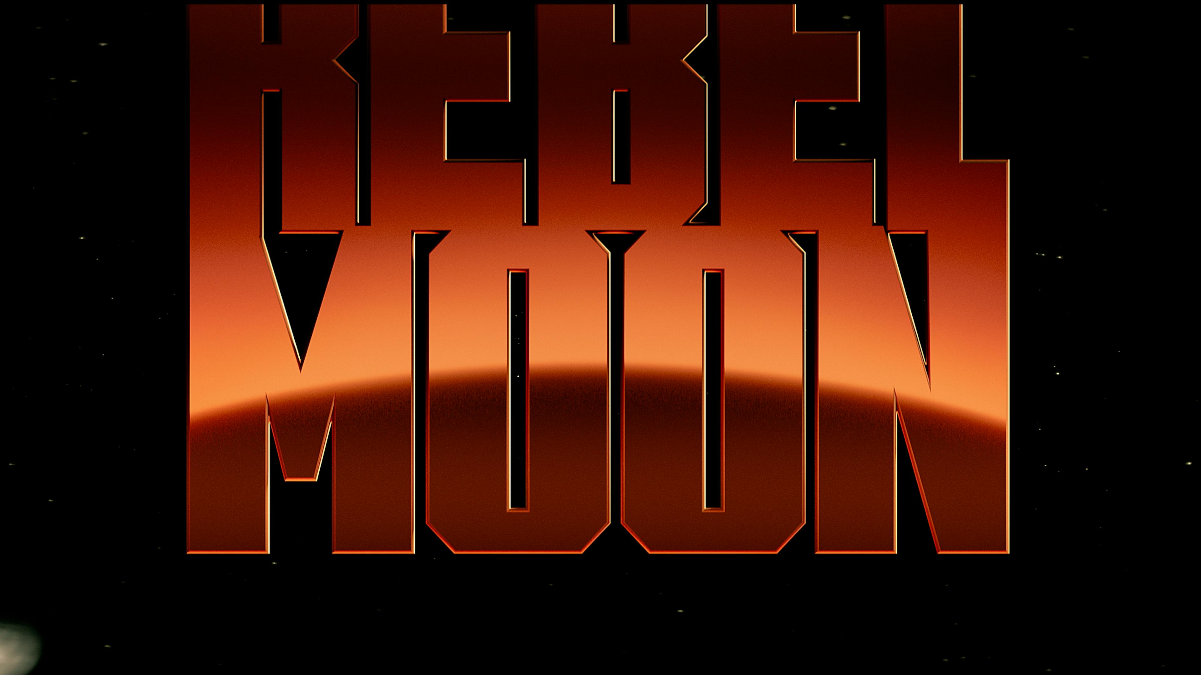 We were delighted to collaborate again with Director Zack Snyder on his latest two-part cinematic space epic, Rebel Moon. The futuristic saga is set in a distant galaxy, where a courageous young woman sets out on a perilous journey across different planets to seek warriors who can aid her in defeating the tyrannical armies terrorizing her peaceful colony. We created customized components for each film: Main Title, locator cards, Main on-end titles, end crawl, and a modified company logo for Stone Quarry. Because there are two parts to the film and two versions of each film (PG-13 and R-rated), we designed 4 different customizations. Part one begins with a sweeping cinematic flight through space and an Anthony Hopkins narration that transports us into the captivating universe of Rebel Moon. The main title is integrated into the scene, with interactive lighting that emanates from the glowing orange planet below. This orange glow became a signature color that we carry through in the end credits’ gradients. To open Part Two, we find our Main Title suspended in space as the camera descends. The signature orange glow illuminates the letters as we fly through them into the opening scene.