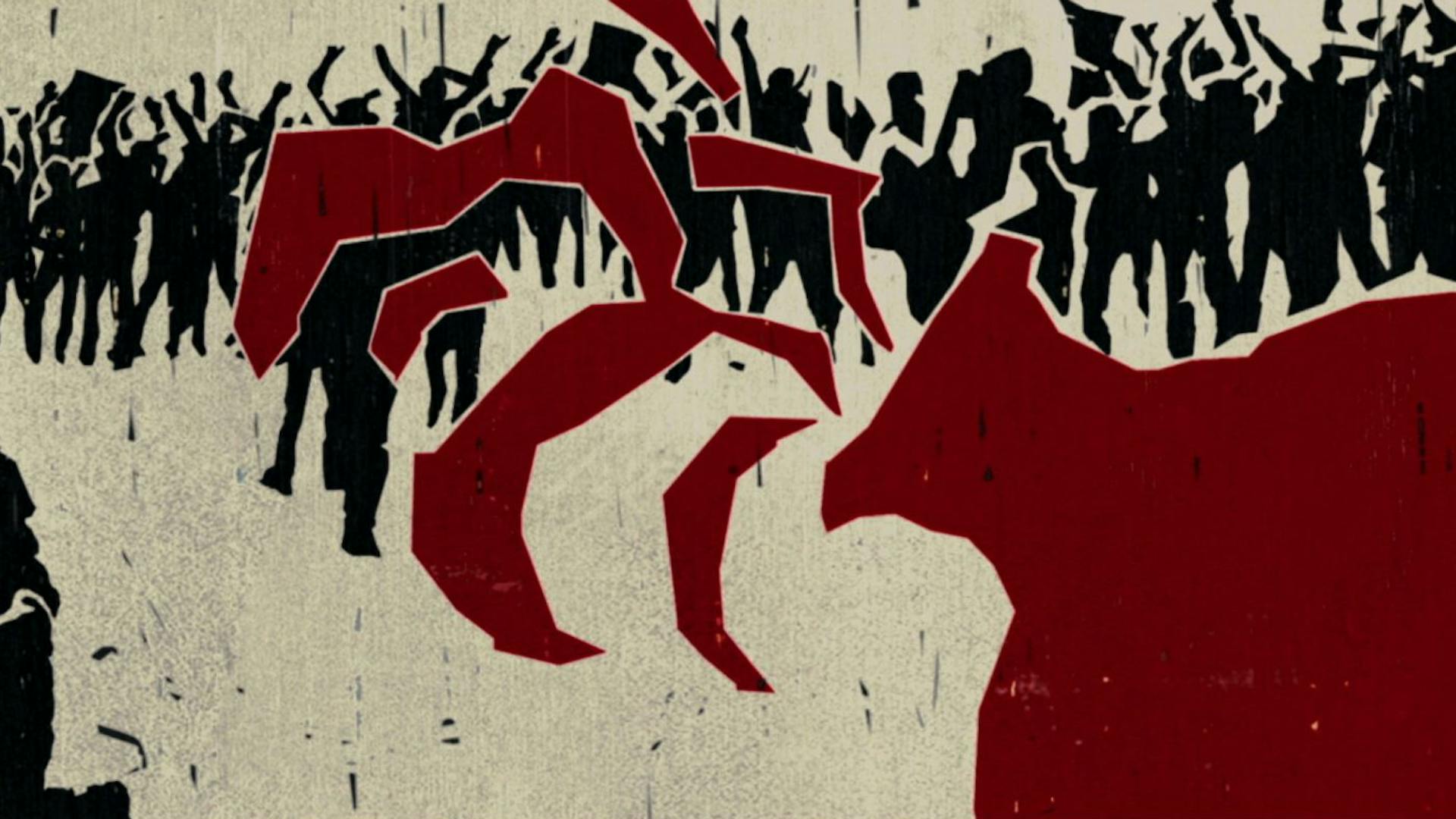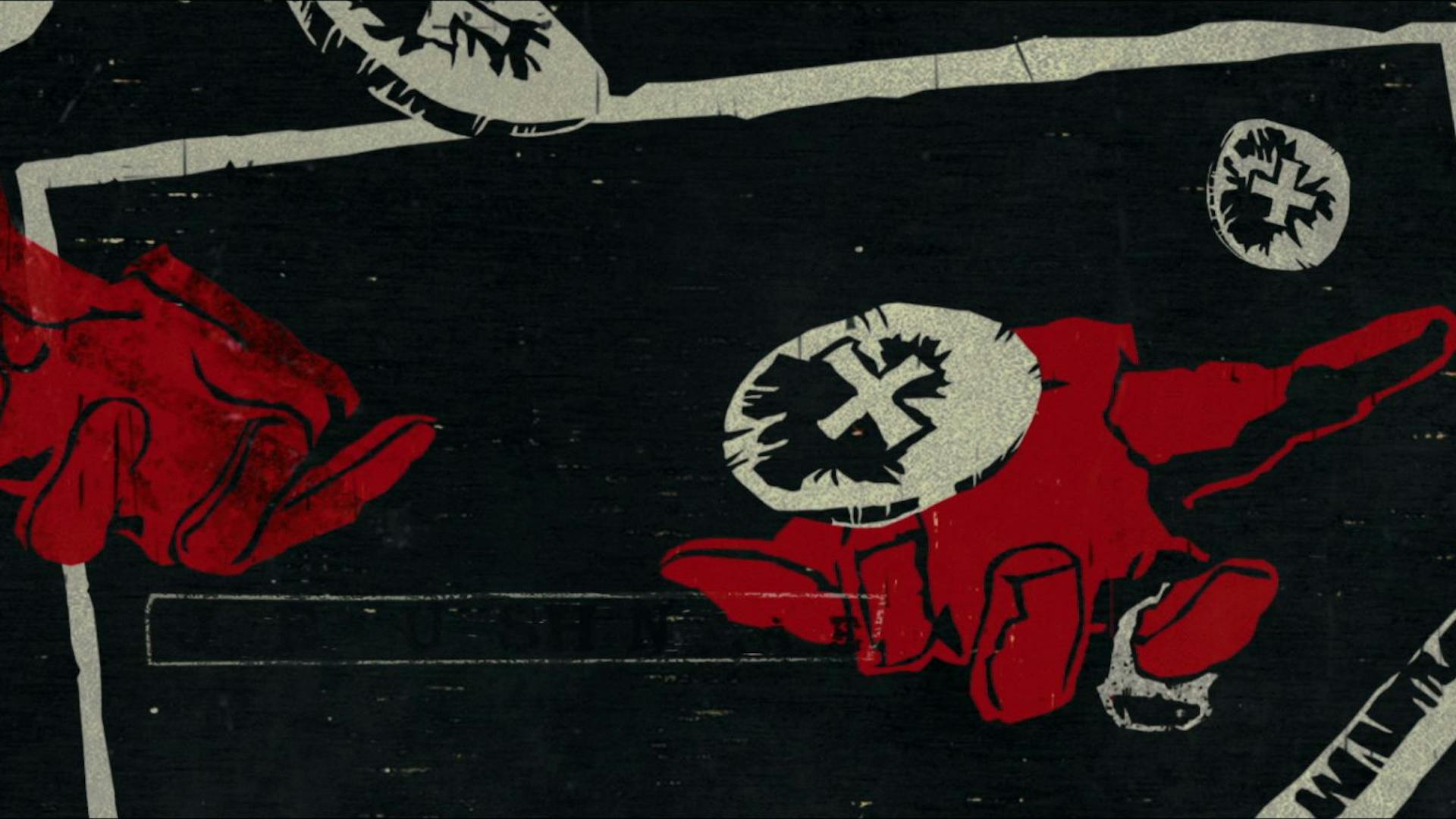 In the new reimagining of the Robin Hood legend, “the Hood” is seen as a revolutionary who fights against a corrupt, greedy government. The film takes place in a period that resembles the Middle Ages, but with many anachronistic touches. This interpretation of the time period enabled us to create a kind of “medieval comic book” that tells the Hood legend in a graphic woodcut style. The style is partly inspired by the woodcut Wanted posters in the film, but also incorporates the idea of Medieval street art, relating to the grassroots movement that Robin Hood inspires in the people. The comic book frames the movie with an Main Title at the start, and a Main on End sequence at the end.