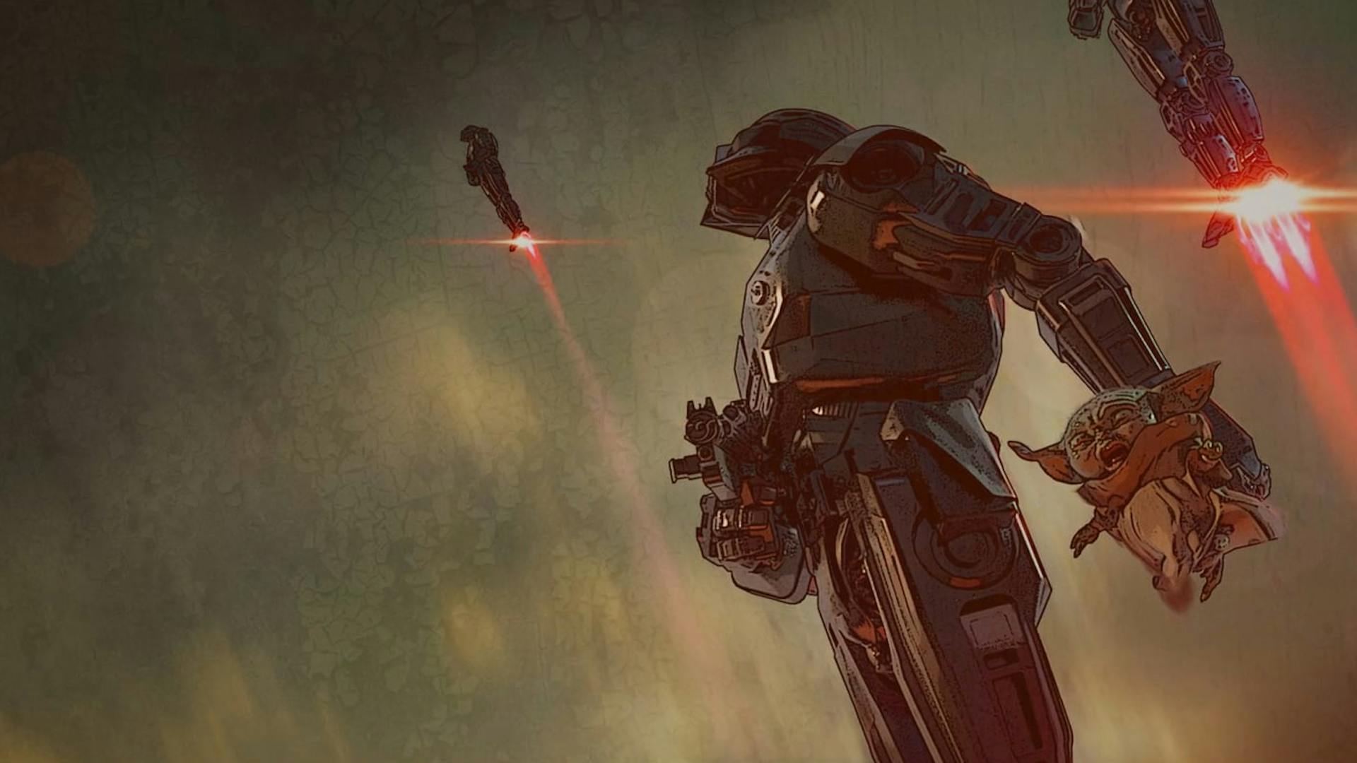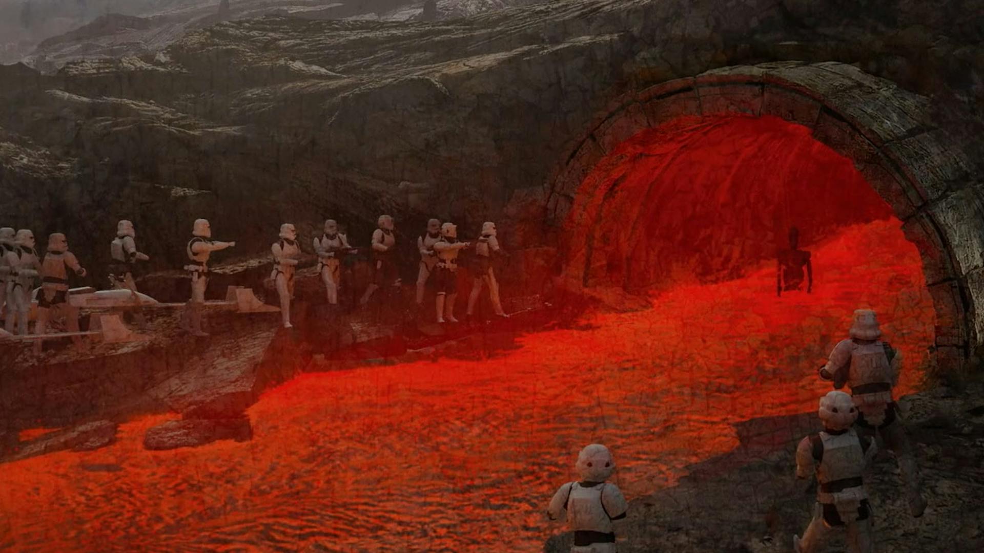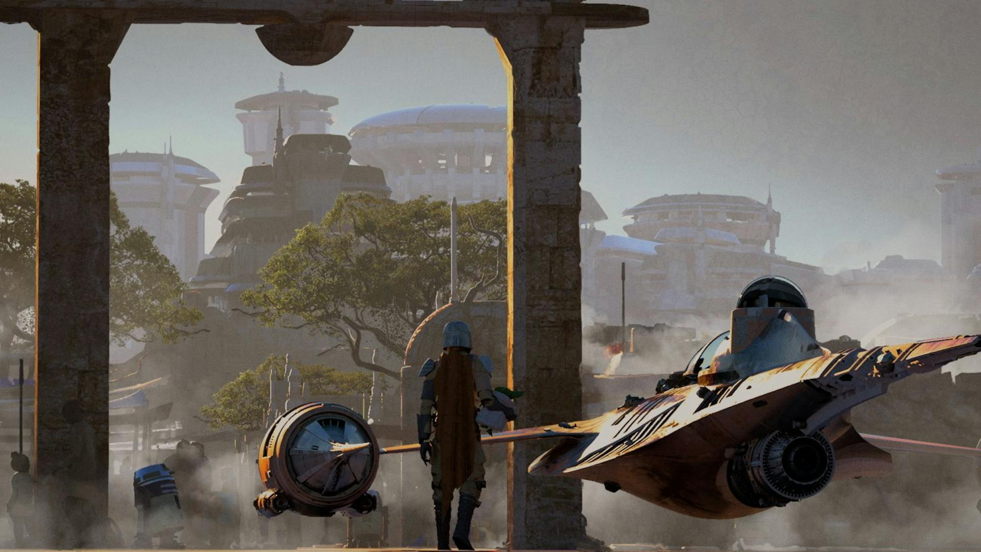 These sequences set The Mandalorian apart from Star Wars movies and shows, and even from other series. We used concept art from the production to portray the events and characters from the episode just watched. Our artists treated the source imagery to create a gritty look, like a weathered painting, adding a physical element. Animated elements bring the paintings to life with subtle dimension and movement within scenes.