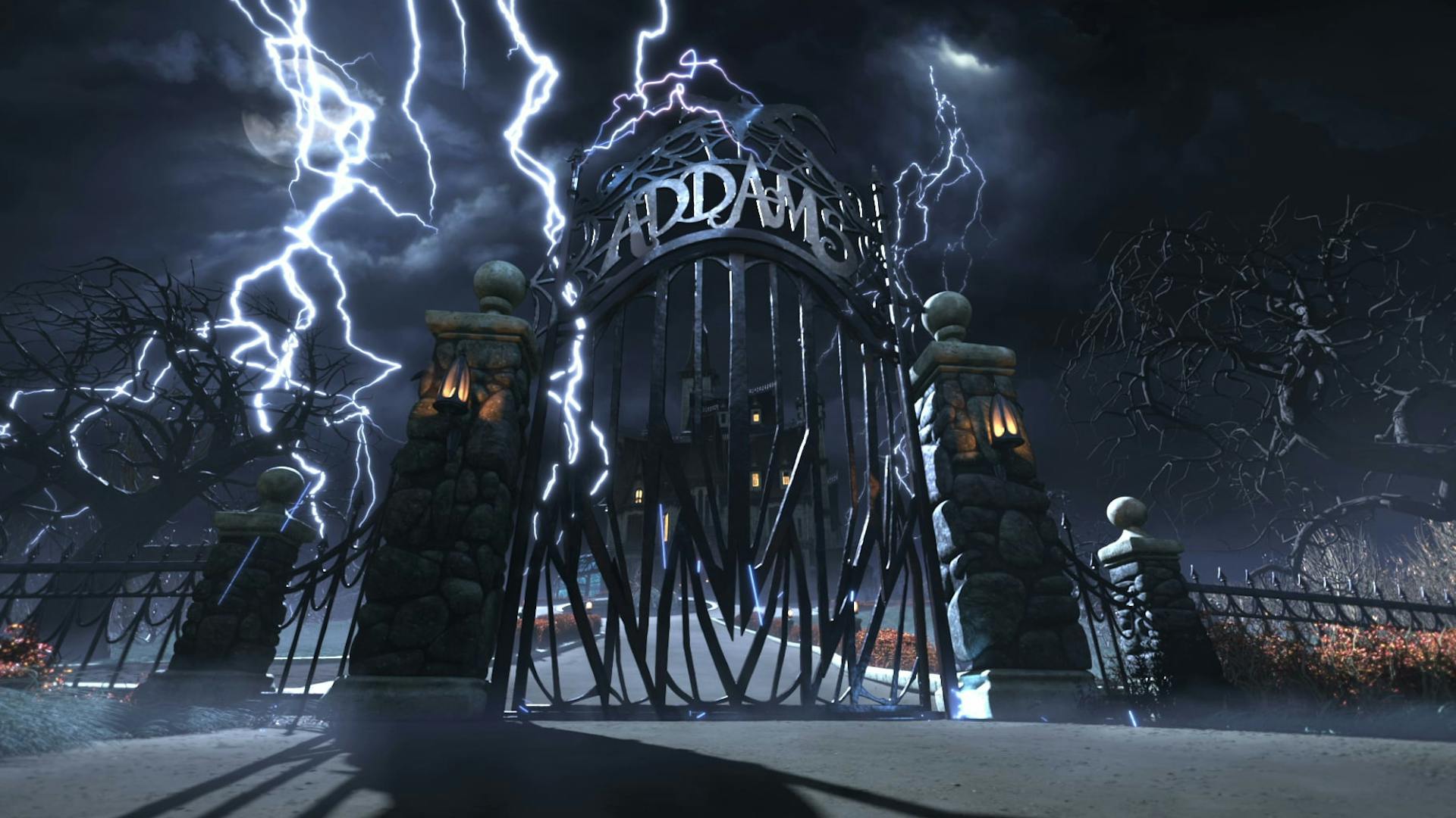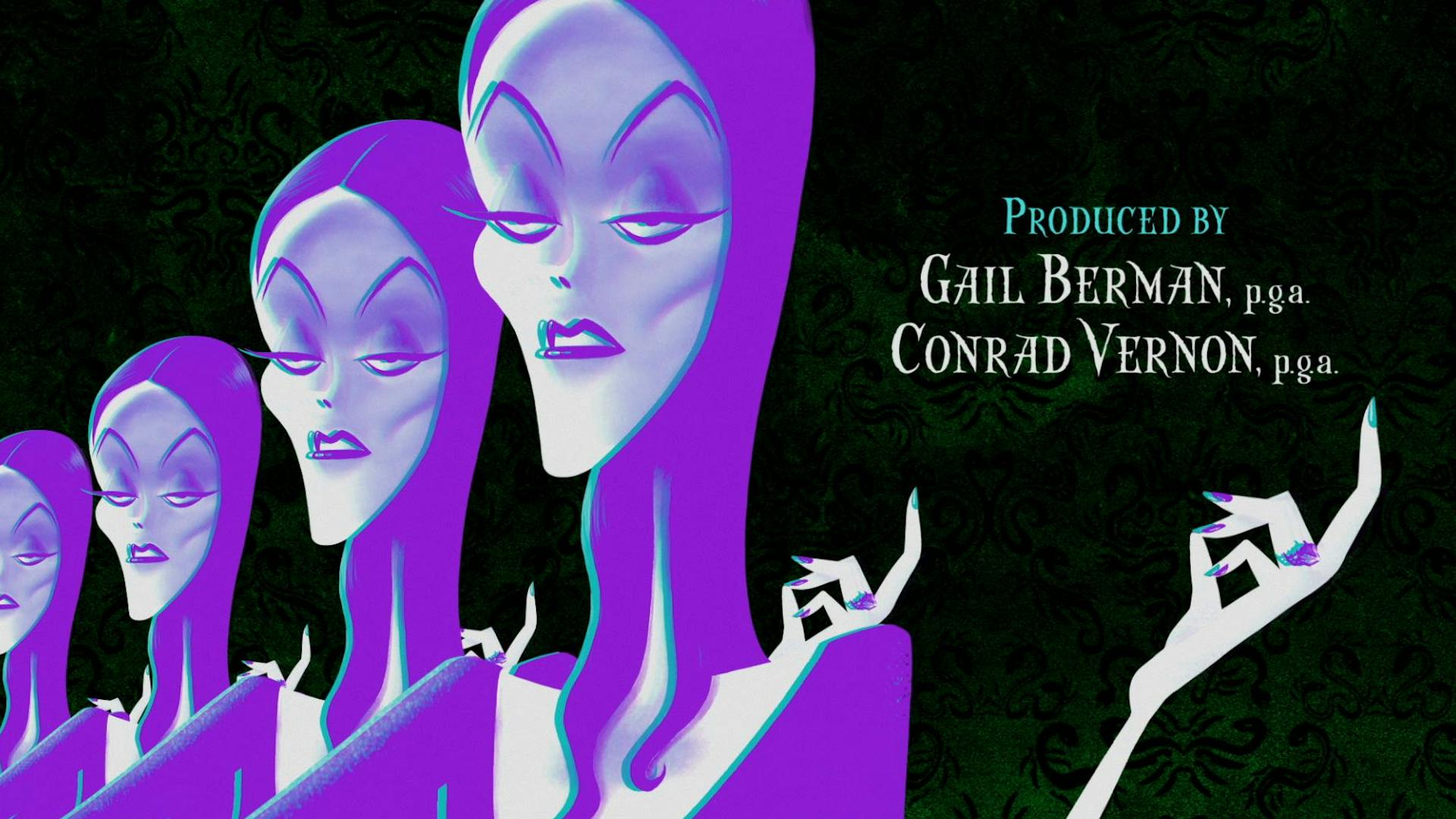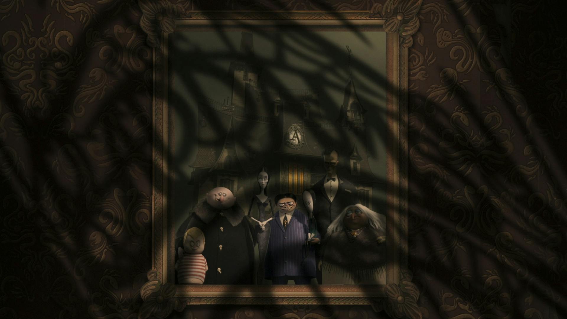 The camera travels across the gallery of paintings, moving seamlessly in and out of them while lightning casts dramatic shadows throughout. The typography animates playfully, sometimes rising up like a zombie from the grave, or descending on a spider’s web. The journey through family pictures helps to endear the audience to the unique weirdness of the Addams family.